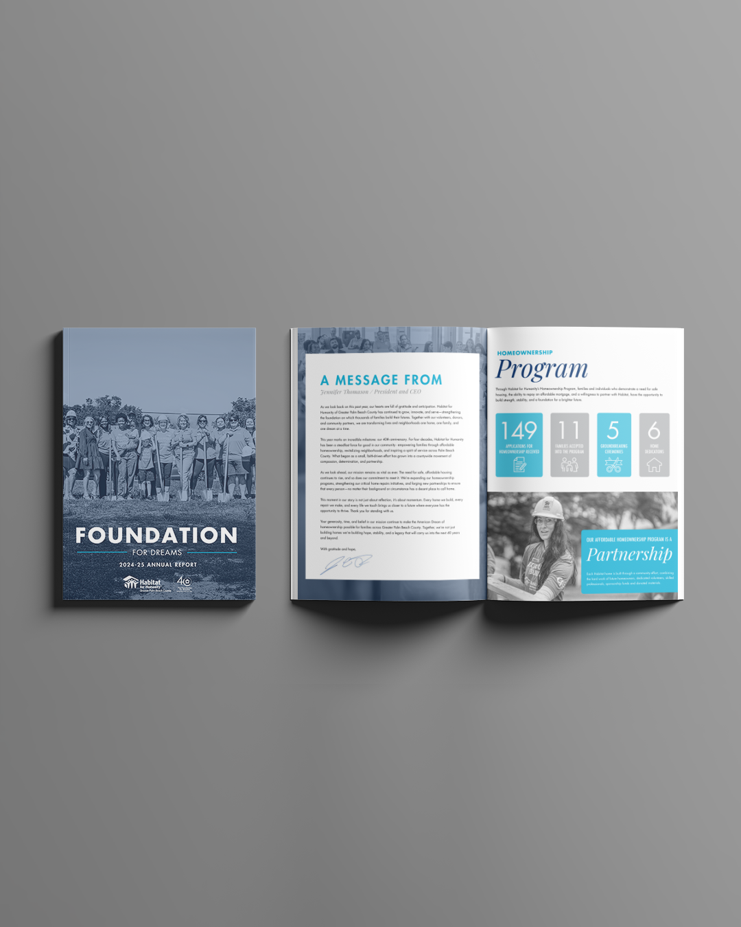 - Targeted Anniversary Branding: Creating a distinct visual identity for high-profile fundraising events like the Palm Beach Society garden party and Women Build.